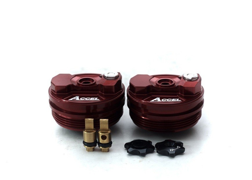 ACCEL ČEP GORNJI (NAVRTKA) AMORTIZERA PREDNJEG SA REGULACIJOM HONDA CRF 250R '18-20, CRF 450R/RX '17-20, CRF 250RX '19-20, CRF 450X/L 19, KAWASAKI KXF 450 '19-20, SUZUKI RMZ 450 '18-19 BOJA CRVENA (KPL.-2KOM.) - PROMOCIJA