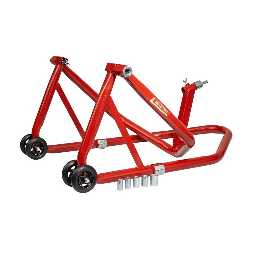 BIKETEC PRO DIZALICA STALAK MOTOCIKLISTIČKI POD GLOWKE RAMA + ADAPTERY TYP-L POD ZADNJI VILJUŠKA (KLINOVI 11,15,18,20,24 MM) BOJA CRVENA