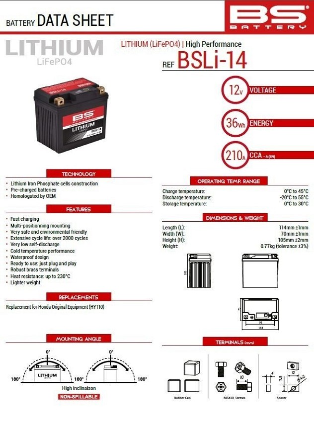 BS AKUMULATOR LITIJUM-JONSKI SA SA POKAZIVAČEM PUNJENJA LIFEPO4 BSLI-14 (114X70X105) (210A,36WH,3AH) HONDA CRF 1100 AFRICA TWIN '20-23 (OEM: HY110) (4)