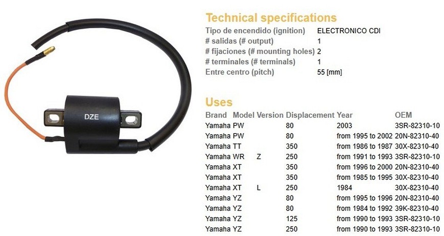 DZE KALEM PALJENJA YAMAHA PW 80 '95-'03; YZ 80 '84-'96; YZ 125/250 '90-'93; XT 250 '84; XT 350 '85-'00; TT 350 '86-'87