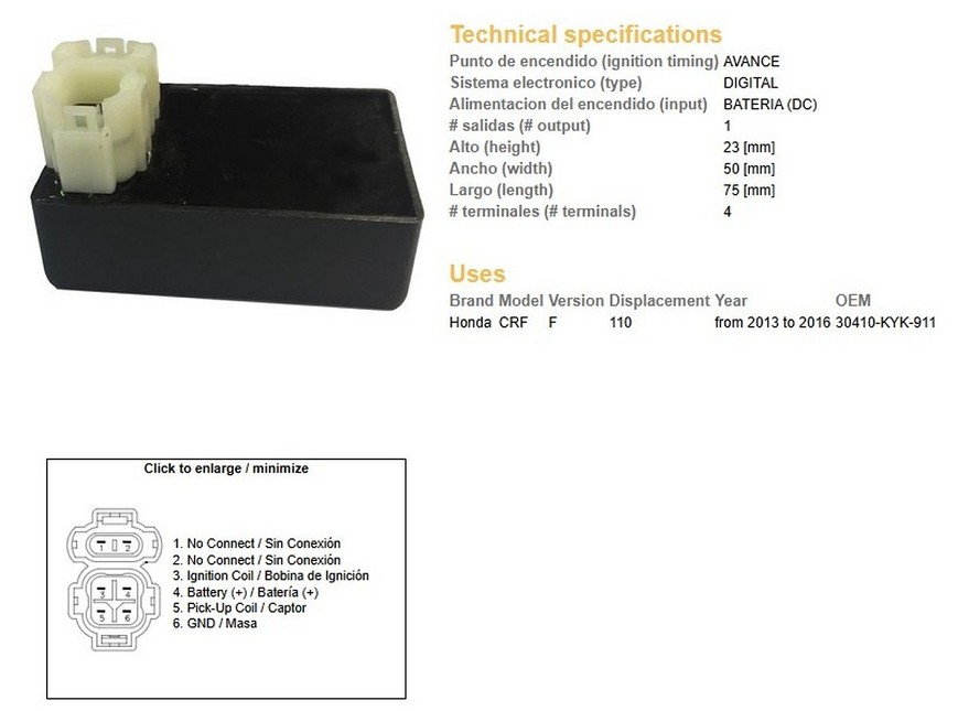 DZE MODUL PALJENJA CDI HONDA CRF 110 '13-'16 (30410-KYK-911)