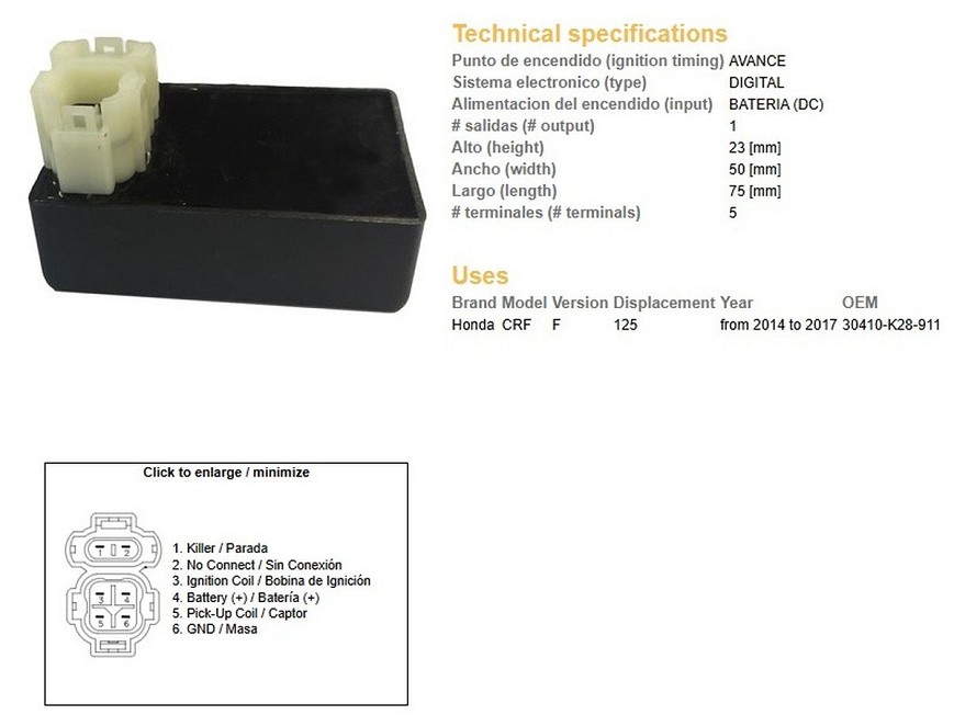 DZE MODUL PALJENJA CDI HONDA CRF 125F '14-'17