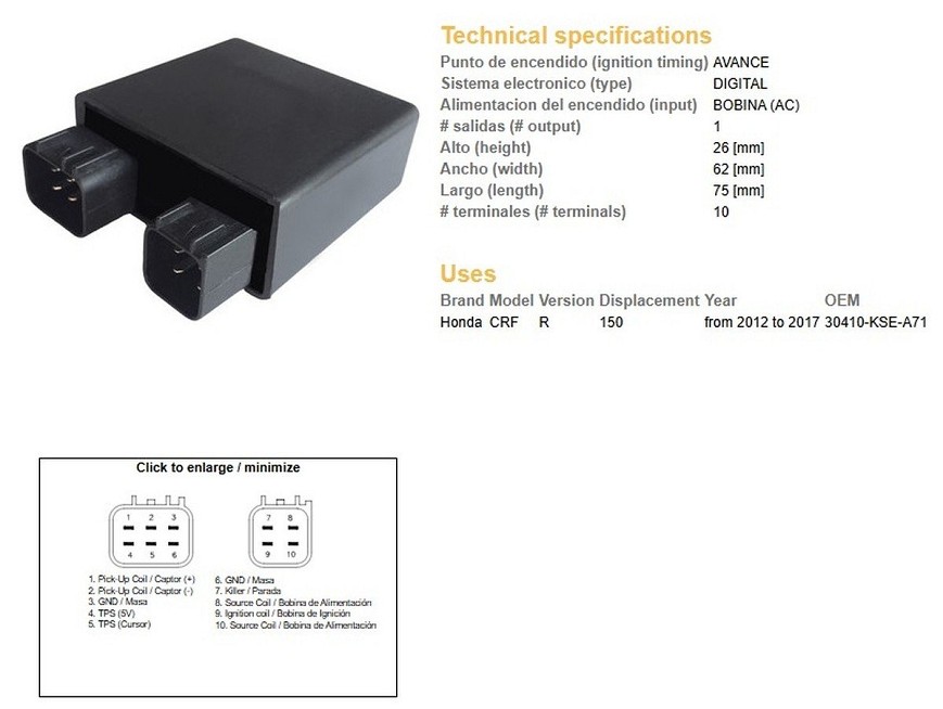 DZE MODUL PALJENJA CDI HONDA CRF 150R '12-'17 (30410-KSE-A71)
