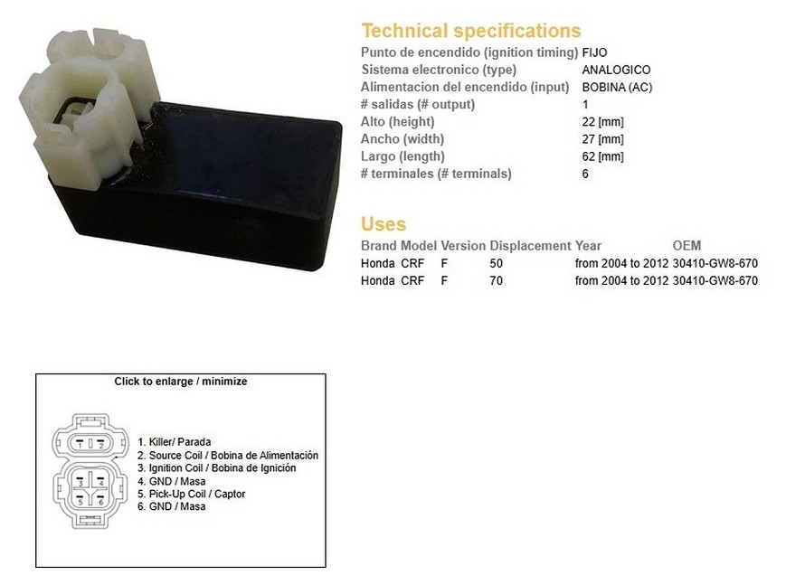 DZE MODUL PALJENJA CDI HONDA CRF 50/70F '04-'12 (30410-GW8-670)