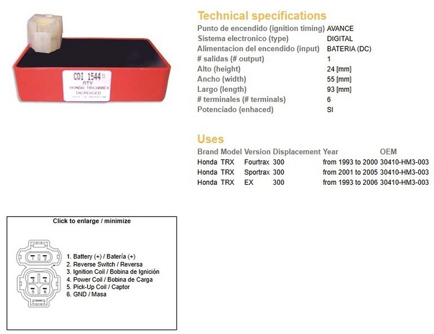 DZE MODUL PALJENJA CDI HONDA TRX 300 FOURTRAX '93-'00; 300EX '93-'06; 300 SPORTRAX '01-'05