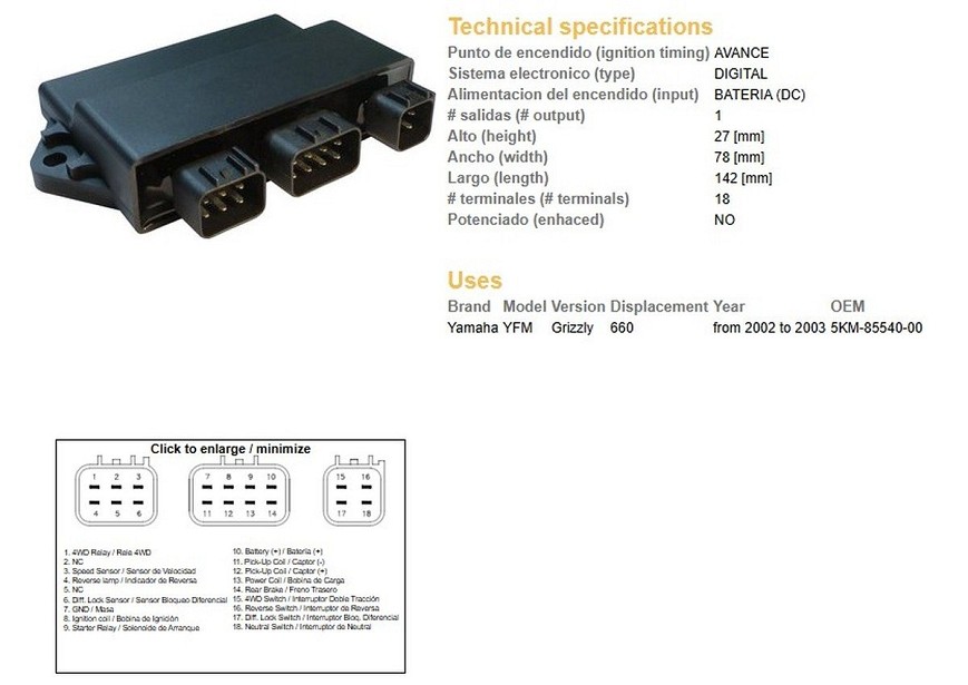 DZE MODUL PALJENJA CDI YAMAHA YFM 660 GRIZZLY '02-'03 (OEM:5KM-85540-00)