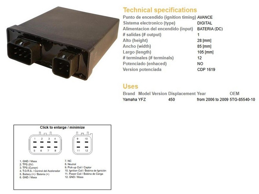 DZE MODUL PALJENJA CDI YAMAHA YFZ 450 '06-'09 (OEM-5TG-85540-10)