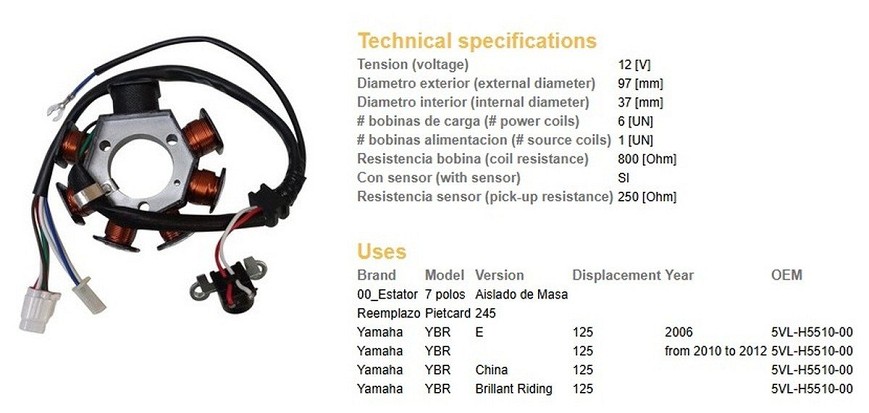 DZE NAMOTAJ ALTERNATORA STATOR YAMAHA YBR 125 '06-'12 (OEM 5VL-H5510-00)