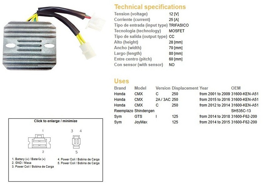 DZE REGULATOR NAPONA HONDA CMX 250 '01-'14 (31600-KEN-A51) (SH535C-13) (ESR181)