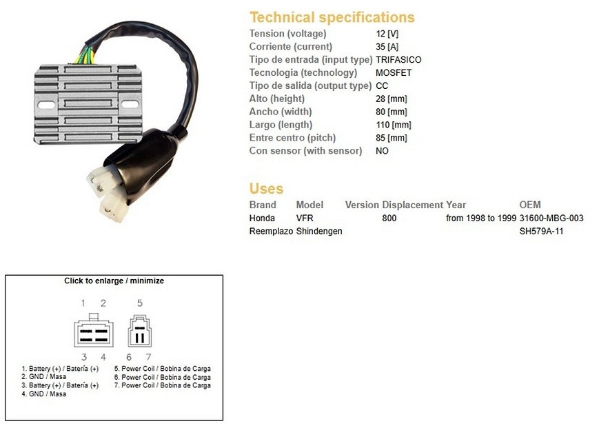 DZE REGULATOR NAPONA HONDA VFR 800 '98-'99 (31600-MBG-003)