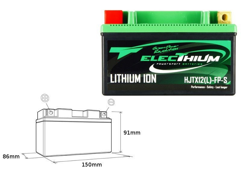 ELECTHIUM AKUMULATOR LITIJUM-JONSKI SA SA POKAZIVAČEM PUNJENJA HJTX12(L)-FP-S (150X86X91) (YTX12-BS, YT12A-BS, YB12B-B2) (TEŽINA 0,9KG)
