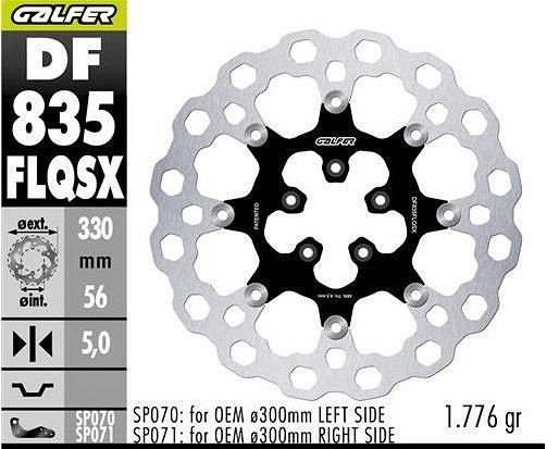 GALFER DISK KOČIONI PREDNJI HARLEY-DAVIDSON (330X56X5) PLUTAJUĆI (CUBIQ) (SUPER OVERSIZE) (WYMAGA SP070; SP071)