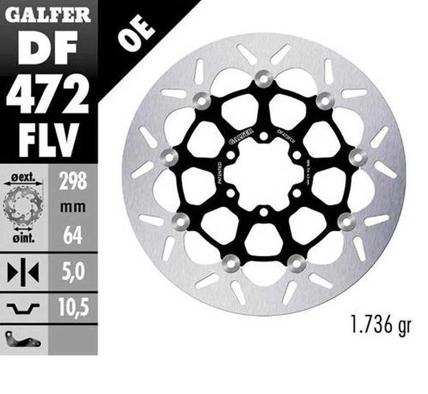 GALFER DISK KOČIONI PREDNJI / ZADNJI APRILIA; CAGIVA; INDIAN; MOTO MORINI; VICTORY; YAMAHA (298X64X5) (FLOATING) (POGLEDAJ OPIS)