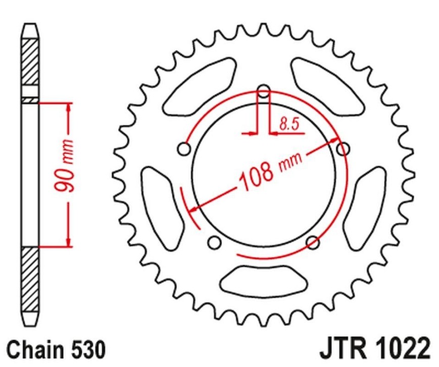 JT LANČANIK ZADNJA 1022 40 DUCATI 500 DESMO/ SL '79-84'; 750 F1 '85-88'; 900 S2 '83-85' CAGIVA 350/650 ALAZZURRA SPORTS '85-88' (102240JT) (LANAC 530) PO NARUDŽBINI