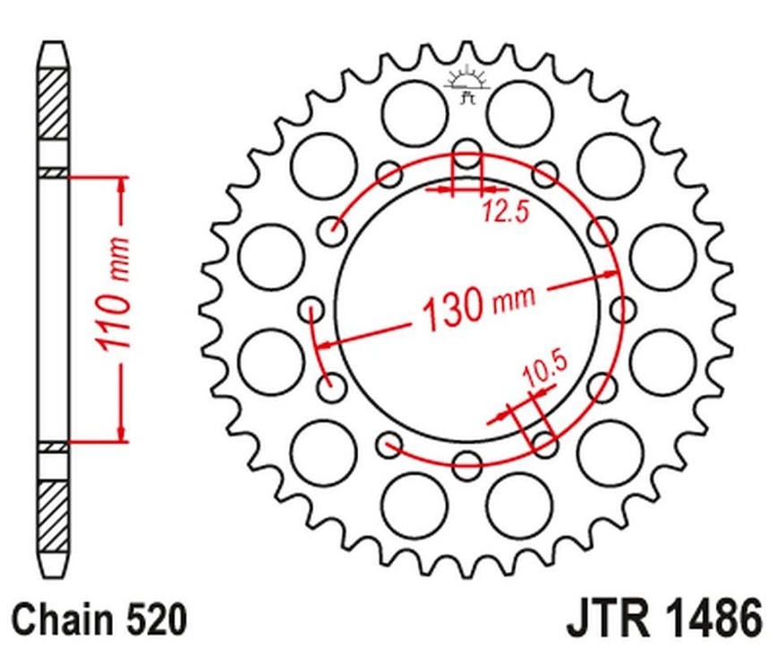 JT LANČANIK ZADNJA 504 42 HONDA TRX 200 '90-97', KAWASAKI EL 250 '88-03' (50442JT) (LANAC520)