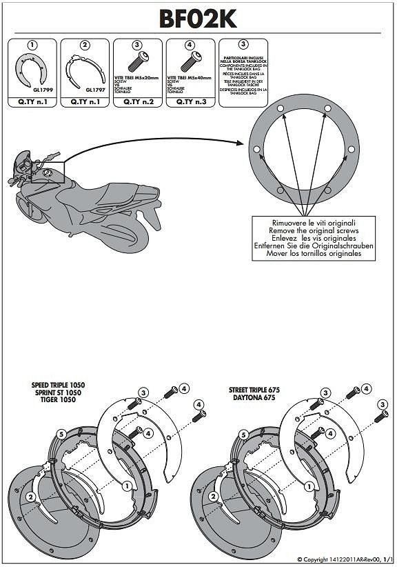 KAPPA MONTAŽA TANKLOCK APRILIA/TRIUMPH/KTM/BENELLI
