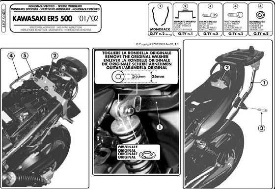 KAPPA NOSAČ CENTRALNOG KOFERA KAWASAKI ER5 500 (01-07) ( BEZ PLOČE )