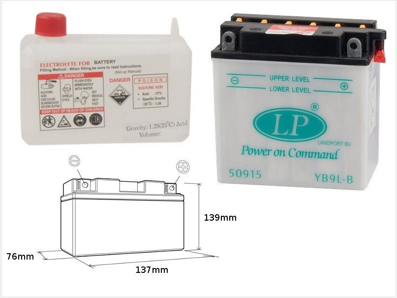 LANDPORT AKUMULATOR YB9L-B (MD LB9L-B) 12V 9AH 137X76X140 (12N9-3B) SA ODRŽAVANJEM - ELEKTROLIT ODVOJENO (4) UE2019/1148