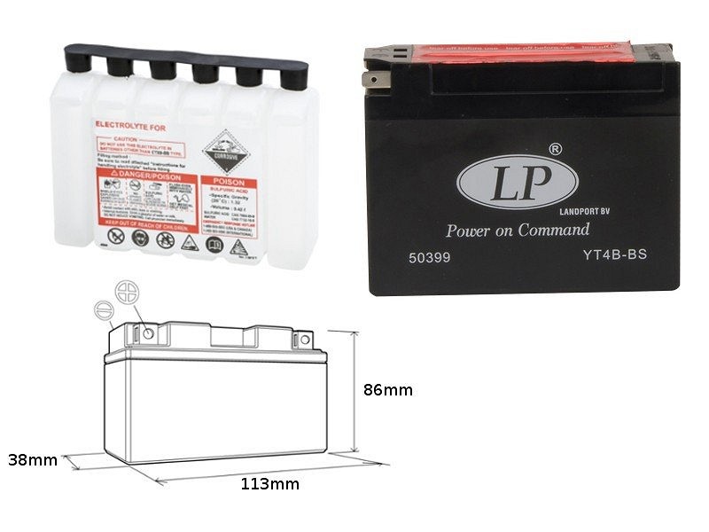 LANDPORT AKUMULATOR YT4B-BS (MA LT4B-BS) 12V 2,3AH 114X39X86 BEZ ODRŽAVANJA - ELEKTROLIT ODVOJENO (16) UE2019/1148