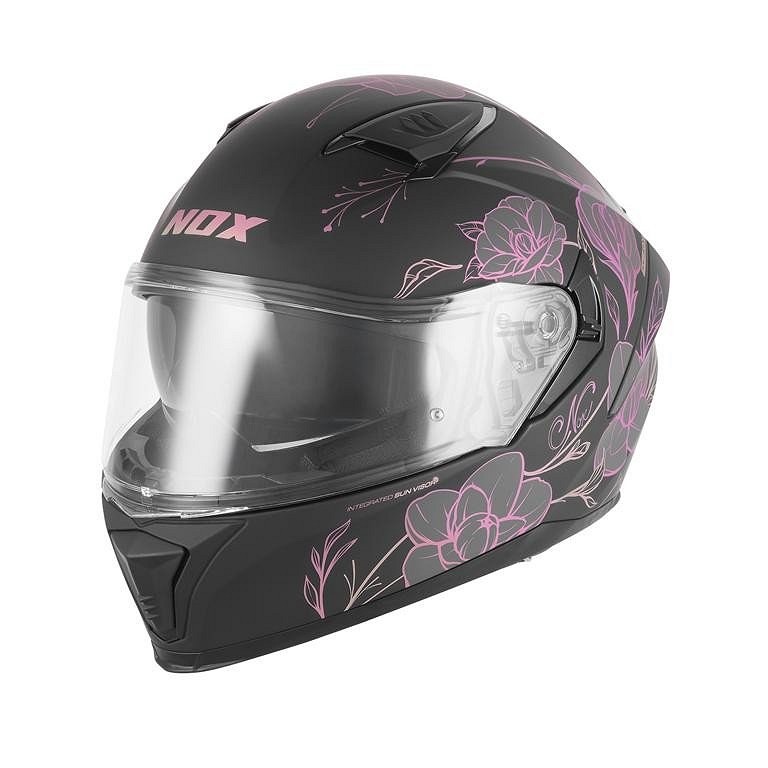 NOX INTEGRALNA KACIGA (FULL FACE) SA VIZIROM N402 SPRING BOJA CRNA MAT/ROZE VELIČINA S