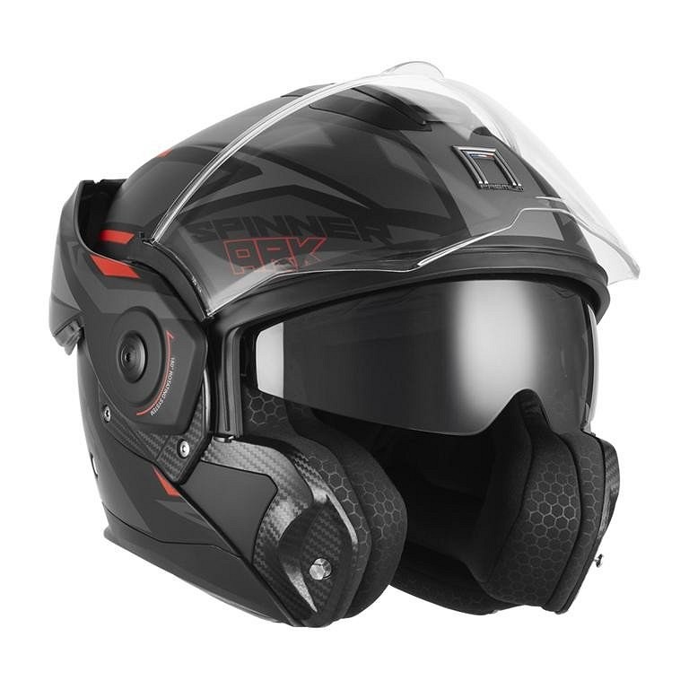 NOX PREMIUM KACIGA PAŠNI FLIP-BACK (PAKNA ZA ZADNJEG) SA VIZIROM SPINNER ARK BOJA CRNA MAT/CRVENA VELIČINA M