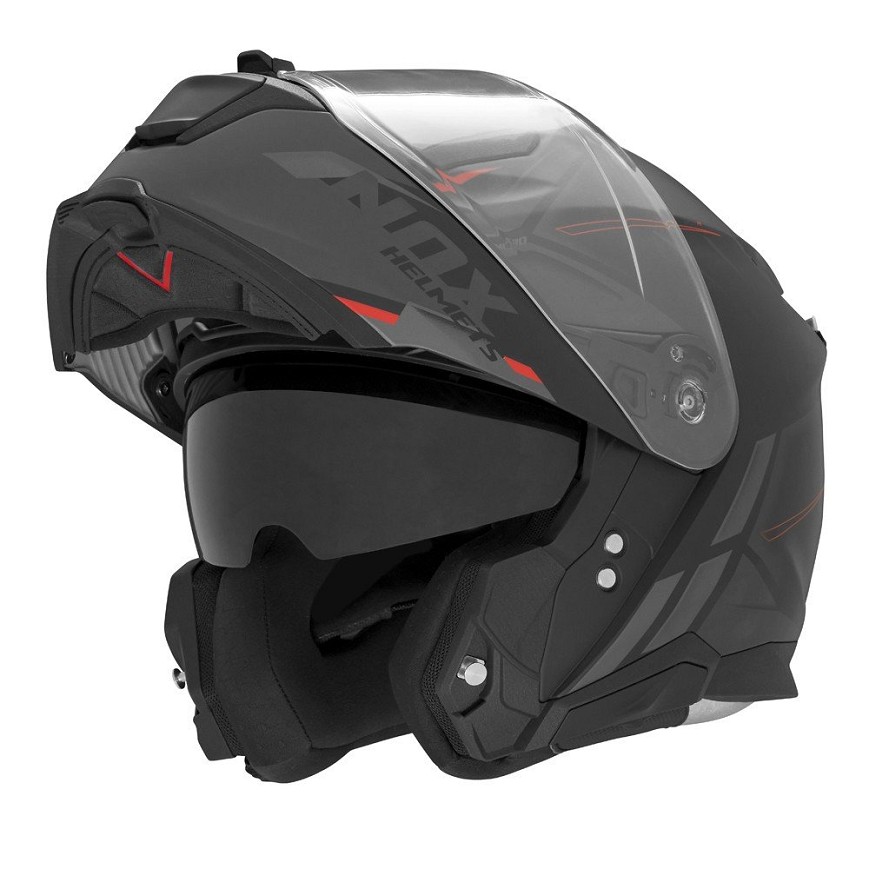 NOX PROMOCIJA KACIGA PAŠNI (FLIP-UP) SA VIZIROM N967 SYNCHRO BOJA CRNA/CRVENA/SIVA MAT VELIČINA M