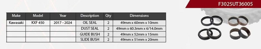 SHOWA SET ZA POPRAVKU AMORTIZERA PREDNJEG KAWASAKI KXF 450 '17-'24, (SEMERINZI ULJNE X 2, PRAŠINSKE X 2, KLIZNI LEŽAJEVI X 4) (SERVICE KIT) (VEŠANJE 49MM)