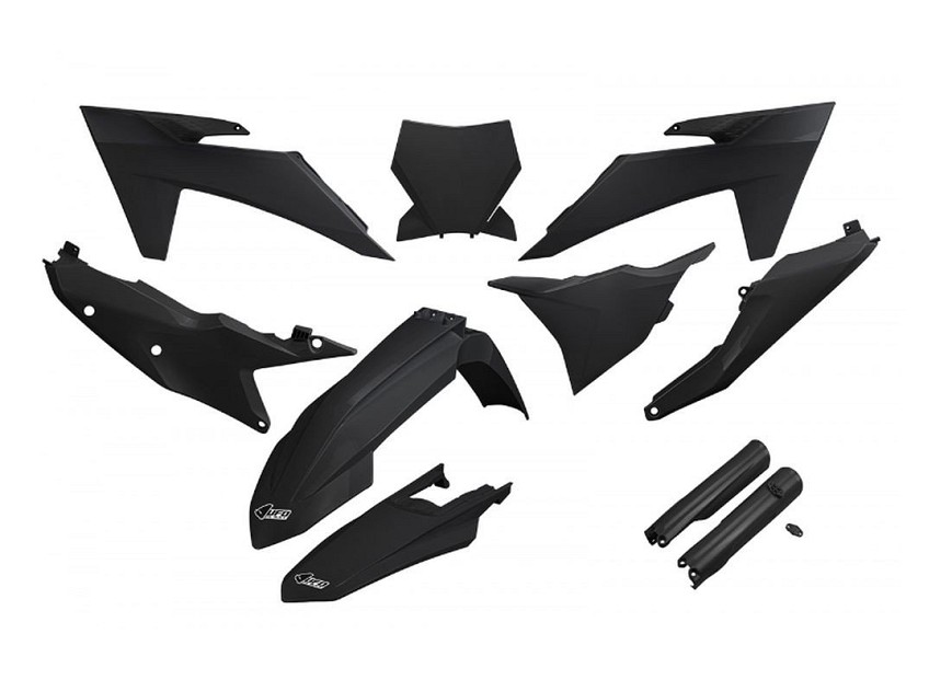 UFO KOMPLET PLASTIKE (FULL KIT) SA ŠTITNICIMA TELESKOPA (AMORTIZERA) KTM SX 125 / 250 / 300 TBI '23-'24, SX-F 250 / 350 / 450 '23-'24 BOJA CRNA