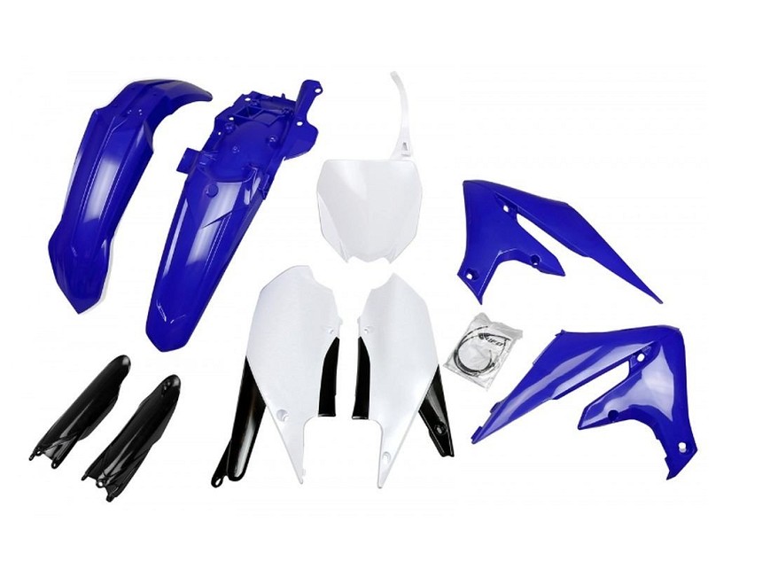 UFO KOMPLET PLASTIKE (FULL KIT) SA ŠTITNICIMA TELESKOPA (AMORTIZERA) YAMAHA YZF 250 '19-'23, YZF 450 '18-'22 BOJA OEM PLAVA BELA CRNA